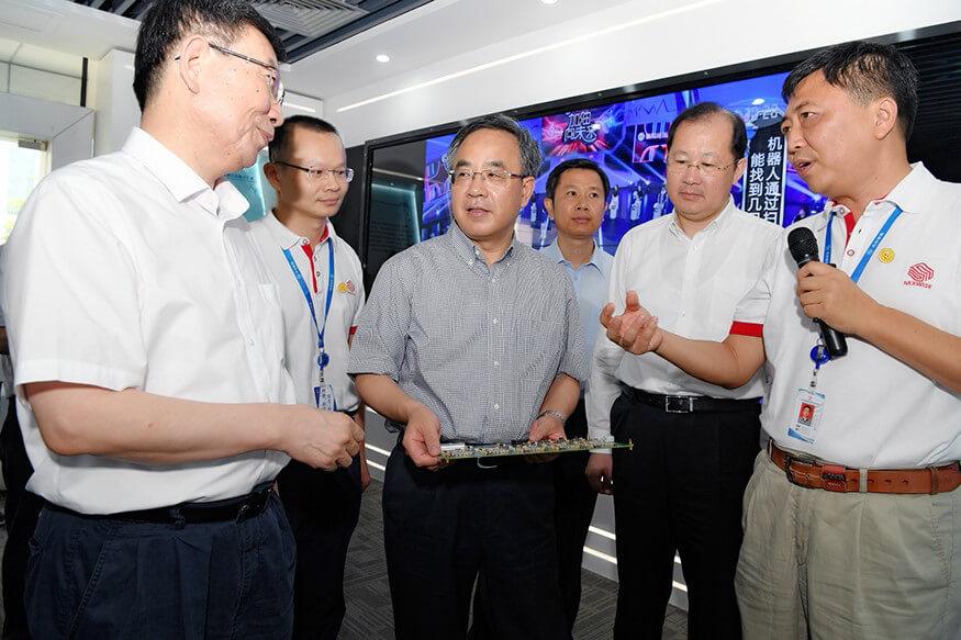 2017年7月29日上午,中央政治局委员、广东省委书记胡春华在广东省委副书记、广州市委书记任学峰、广东省委秘书长江凌、副省长黄宁生等领导陪同下赴广州市企业调研,Z6.COM-尊龙集团(集团)智能科技有限公司官网作为被调研企业之一,公司董事长孙超向胡春华书记介绍了公司的发展历程,研发中心总经理朱勇杰介绍了公司自主研发的专用高性能计算平台这一核心技术的研发历程、国内外的行业地位、发展前景等。